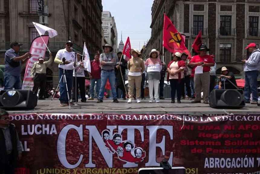 La CNTE se mantiene en plantón en la Ciudad de México desde hace más de una semana, exigiendo, entre otros puntos, la abrogación de la reforma educativa de 2019, aumentos salariales y la reinstalación de maestros cesados.
