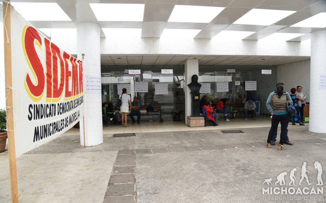 Morelia, Michoacán. El Sindicato de Empleados Municipales de Morelia (Sidemm) tomó las instalaciones del Ayuntamiento, debido a presuntos atropellos realizados en contra de trabajadores de la Tesorería Municipal.