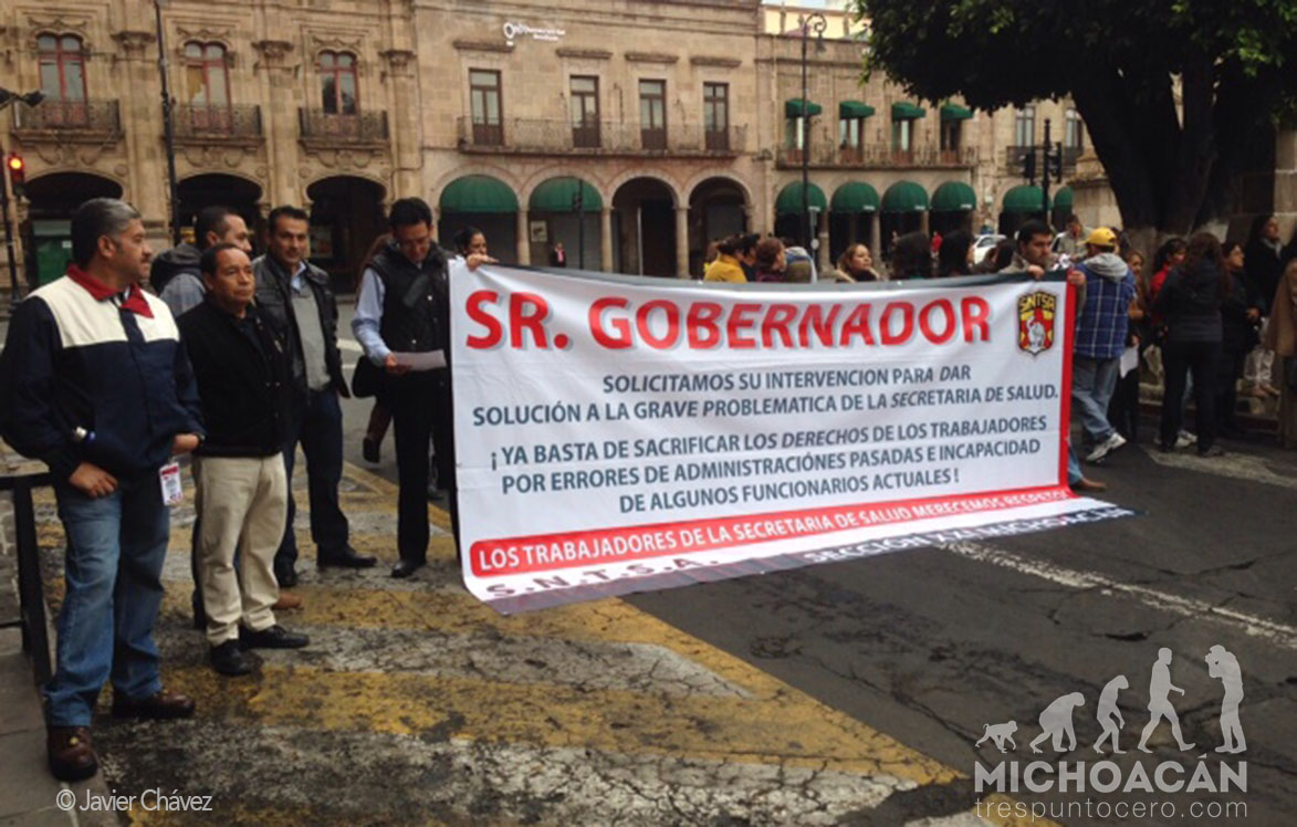 Morelia, Michoacán.-El Sindicato Nacional de Trabajadores de la Secretaría de Salud, Sección 21 se manifiestan frente al Palacio de Gobierno para exigir una serie de demandas que desde hace meses el gobierno estatal que encabeza Salvador Jara Guerrero no ha cumplido.