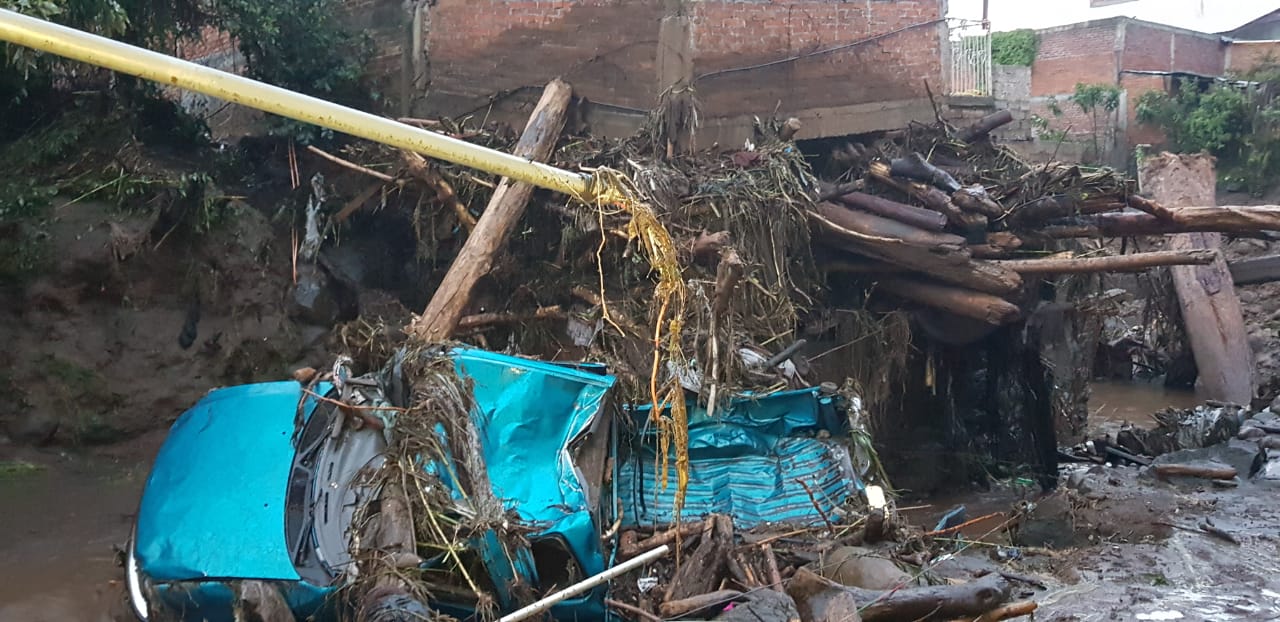 La corriente de agua dañó cerca de 20 viviendas, arrastró una cantidad indefinida de vehículos y arrastró al menos a las cinco personas localizadas sin vida, tres de ellas son menores de edad.