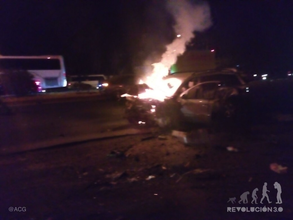 Tras el percance, el vehículo Nissan Sentra quedó totalmente destrozado mientras la camioneta Mercedes Benz se vio envuelta en llamas, de igual forma el tercer vehículo involucrado Ford Focus resultó con severas afectaciones.