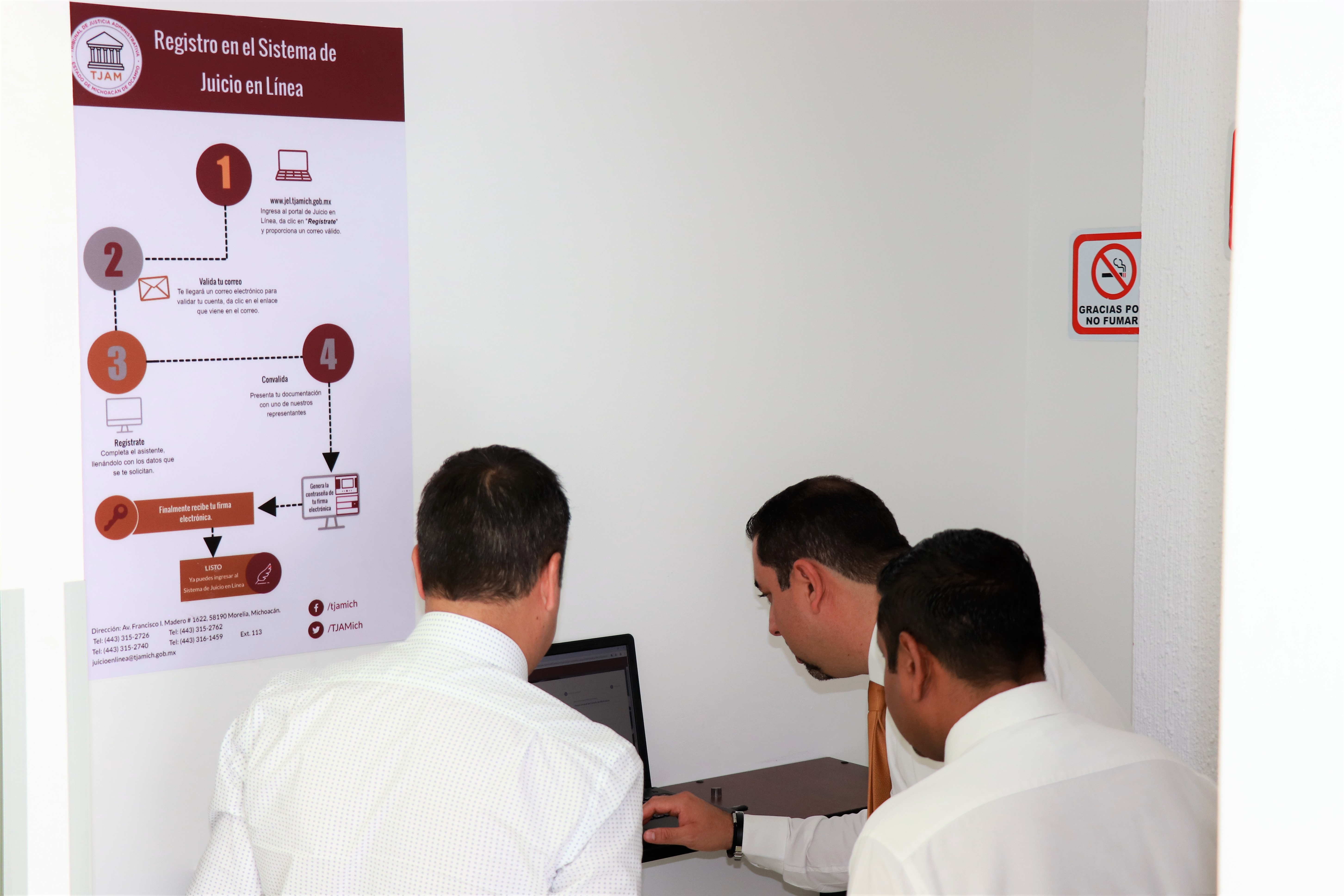 Los interesados pueden realizar su registro en el sitio del Juicio Administrativo en Línea www.jel.tjamich.gob.mx, donde encuentran una sencilla guía para iniciar con este trámite. Puede hacerse desde cualquier computadora con internet, o si lo desean, en el mismo Tribunal está a su disposición el módulo de atención para darse de alta.