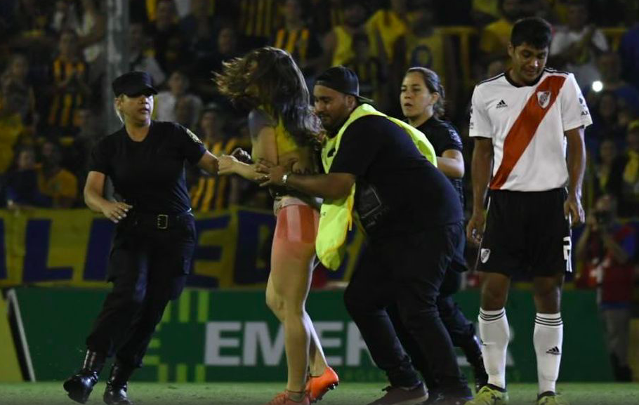 #VIDEO Aficionada semidesnuda salta al campo durante el encuentro de Rosario Central vs River Plate
