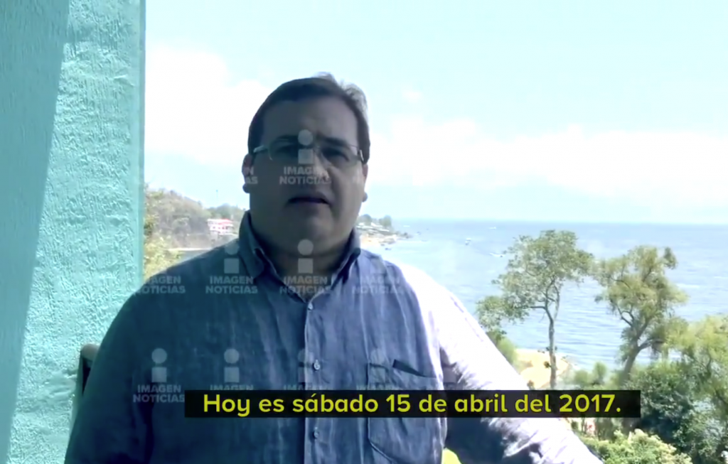 “Hoy es sábado 15 de abril del 2017. Estoy hablando desde la Laguna de Atitlán en Guatemala. Me estoy entregando y evidentemente darán a conocer como si hubiera sido sorprendido y detenido, pero como verán estoy totalmente en libertad”, declara Duarte.
