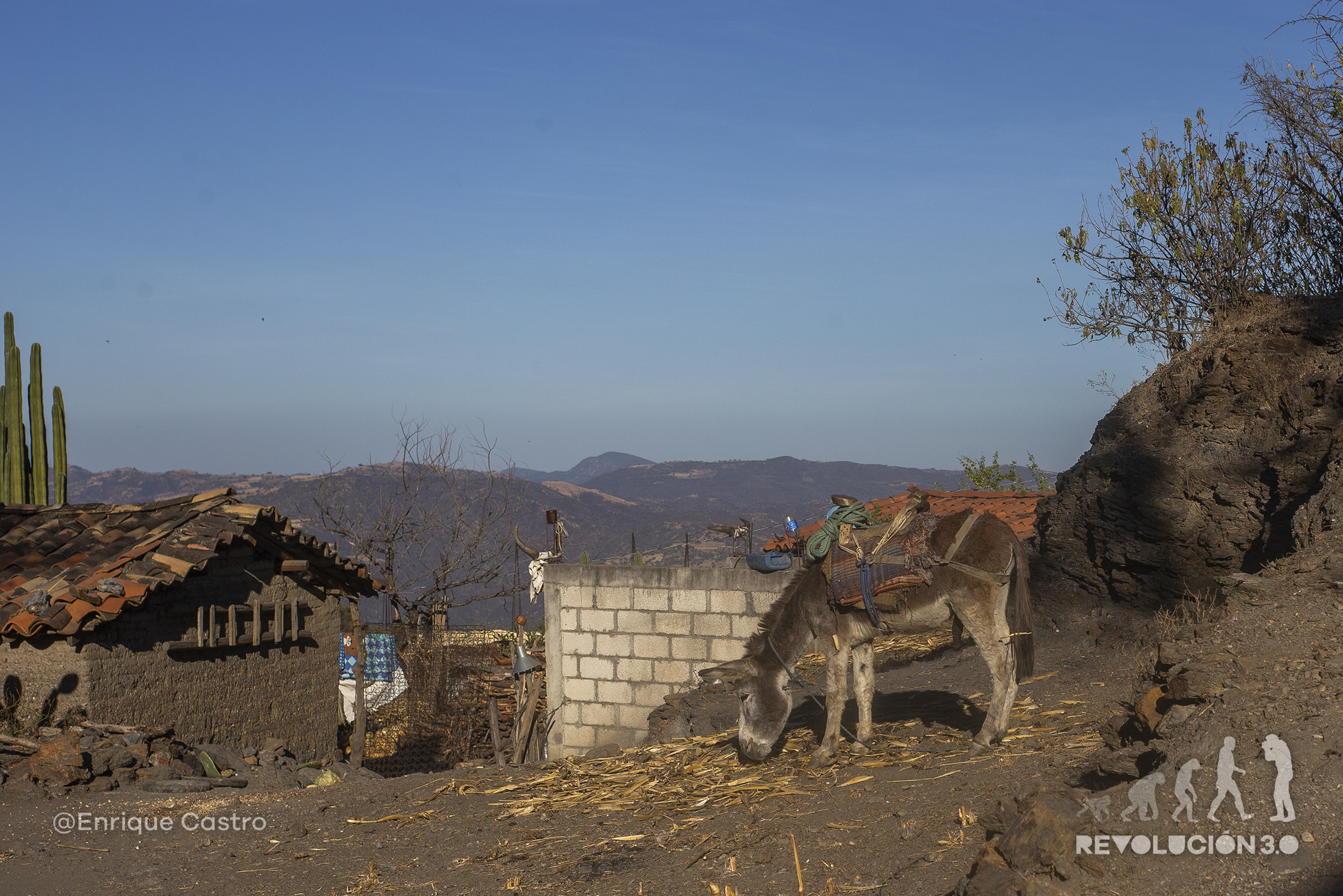 El café y tortillas son “de ley” para comenzar el día. En las casa y en las calles los animales acompañan en las actividades a los pobladores; burros, Guajolotes, gallinas y perros.